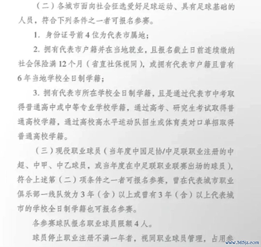 第一,球员阅历更“严苛”。思代表一个城市出战,光有当地户口还不够,还必须知足在当地开通交纳社保满12个月,或领有当地学校6年全日制学籍。学籍的认定也很严格,必须是通过当地中考、高考等正规路线获取的,或是高水平畅通队招生或体育类对口单招获取的。